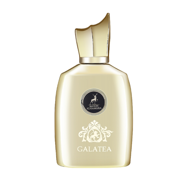 Galatea by Maison Alhambra is een veelzijdige unisex geur die elegantie en diepte uitstraalt. De geur opent met een krachtige leernoot die wordt verzacht door fruitige en aromatische accenten. Het hart onthult warme, houtachtige en zoete vanilletonen, die zorgen voor een verfijnde en uitnodigende diepte. De basis is rijk aan poederige amber en rokerige nuances, wat een sensuele en gelaagde finish geeft.