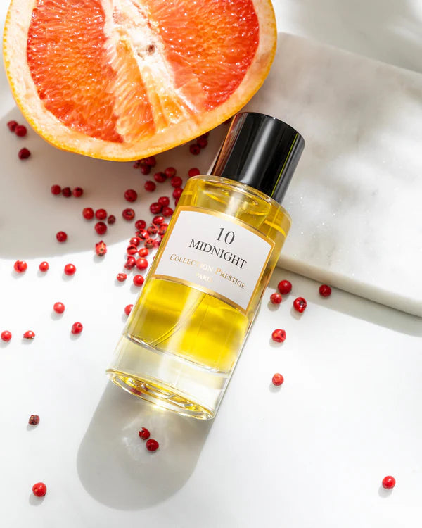 Midnight is een hypnotiserende uniseks geur die de aantrekkingskracht van contrasten perfect belichaamt. De geur opent met een sprankelende frisheid van roze bessen en bergamot, gevolgd door een hart van elegante roos dat een zachte, verfijnde touch toevoegt. De basis, met diepe ambergrijs, aardse patchouli, ceder en guaiac hout, zorgt voor een mysterieuze en betoverende finish. Midnight is als een elegante smoking die een onweerstaanbare aura van nachtelijke verleiding creëert.
