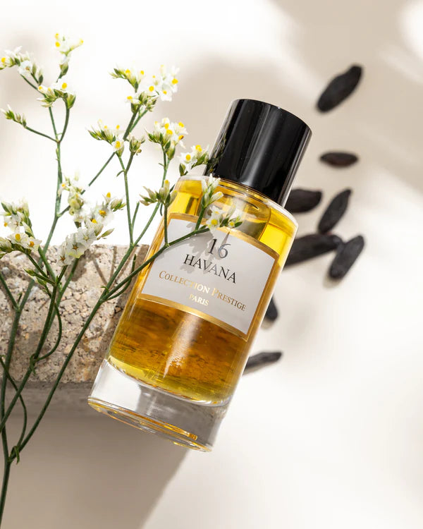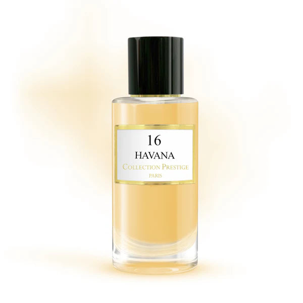 Havana is een krachtige oosterse uniseks geur die de zintuigen prikkelt met zijn diepe en verleidelijke aroma's. De geur opent met een rijke essensie van tabaksbladeren en kruidige tonen, wat direct een warm en mysterieus karakter geeft. Het hart onthult romige nuances van tonkaboon, tabaksbloem, vanille en cacao, die zorgen voor een luxueuze zachtheid. De basis wordt afgerond met gedroogd fruit en houtachtige noten, versterkt door zoete accenten, wat een harmonieuze en langdurige indruk achterlaat.