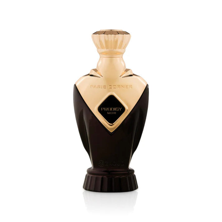 Prodigy Noir is een gedurfde en onvergetelijke geur die de perfecte balans tussen frisheid en warmte biedt. De topnoten van bergamot, kruiden en abrikoos zorgen voor een verfrissende en pittige opening. In het hart komen roos, karamel, chocolade en tonkaboon samen, wat zorgt voor een rijke en sensuele geur. De basis is warm en luxueus, met vanille, cashmeran, cederhout, amber en muskus, die de geur een diepe, langdurige en verfijnde afwerking geven.